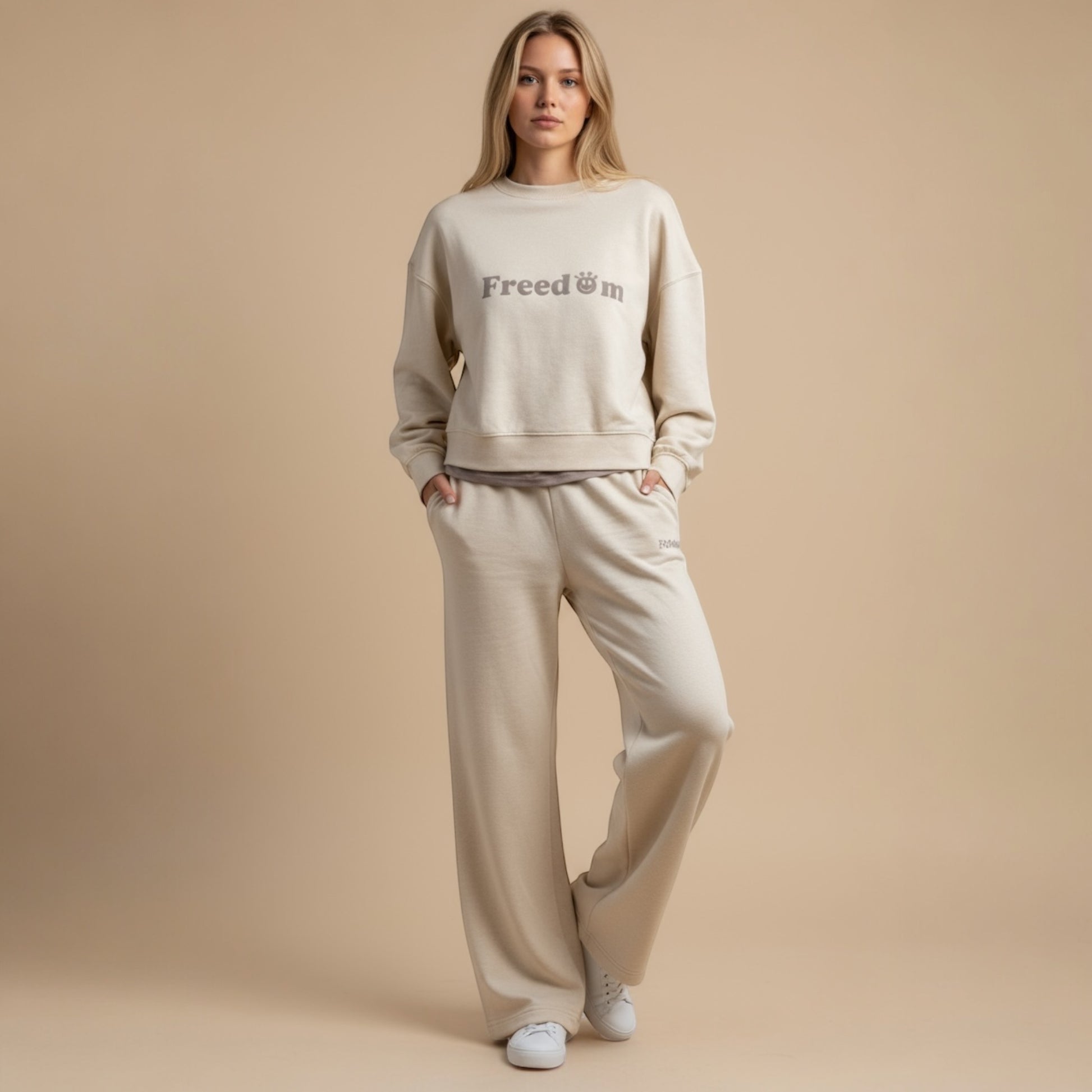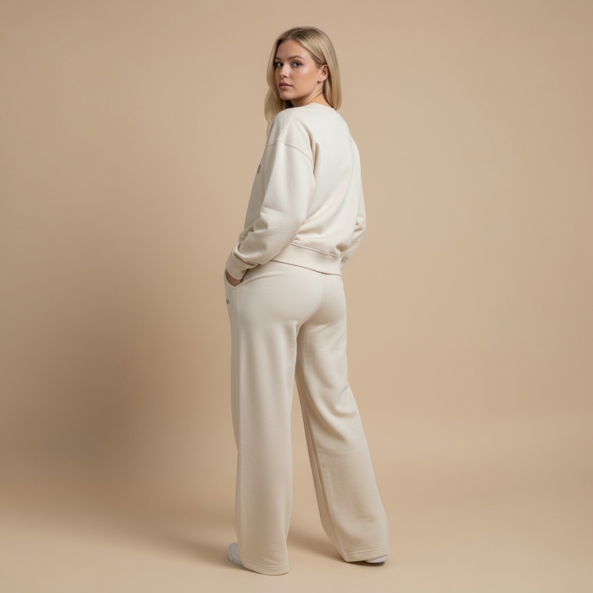 Questa tuta completa, felpa + pantalone, nasce per accompagnarti ogni giorno, senza compromessi.